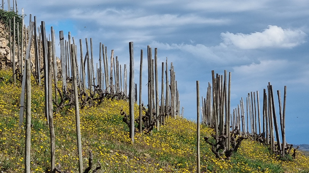 - Les chais de vinification et d’élevage sont situés dans une vitrine exceptionnelle de terrasses et vignes en échalas.